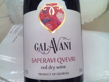 Обратная сторона этикетки бутылки грузинского сухого виноградного вина Саперави Квеври Галавани